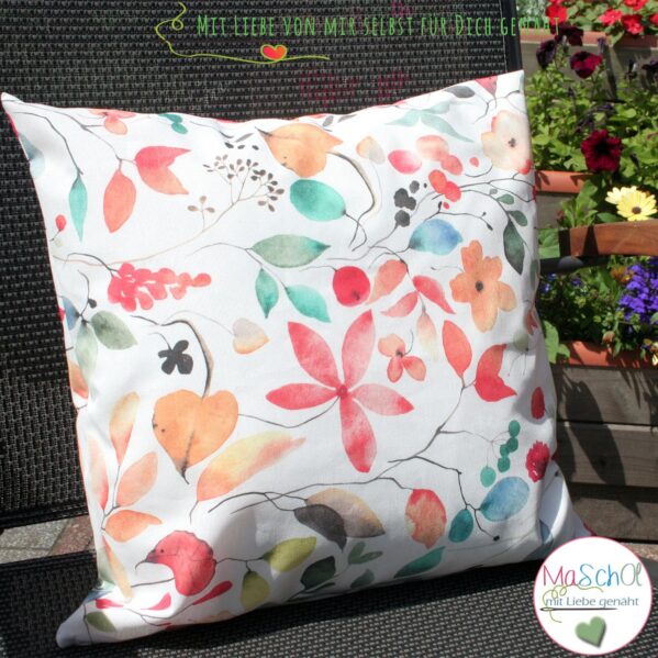 Schönes Kissen Outdoor im Dekor bunte Blüten von MaSchOl Handmade.
