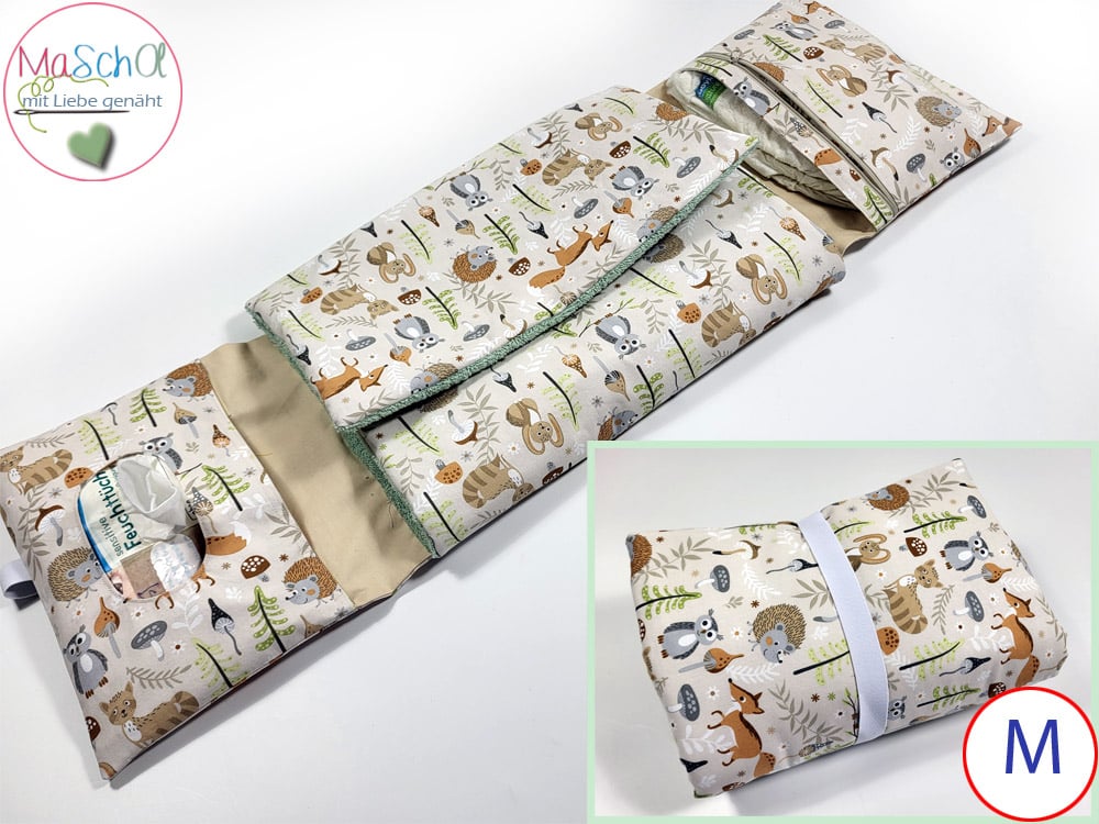 Diese Wickelunterlage unterwegs M Waldtiere BW incl. seitlicher Taschen